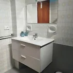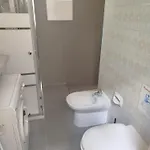 Ein Bidet, eine Badewanne und eine Dusche sind ebenfalls im Badezimmer vorhanden. Das Badezimmer ist mit Handtüchern ausgestattet.